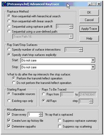 圖14 高級光線追跡對話框,勾選下方“創建/使用光線歷史文件“”的選項和“確定光線路徑”的選項。