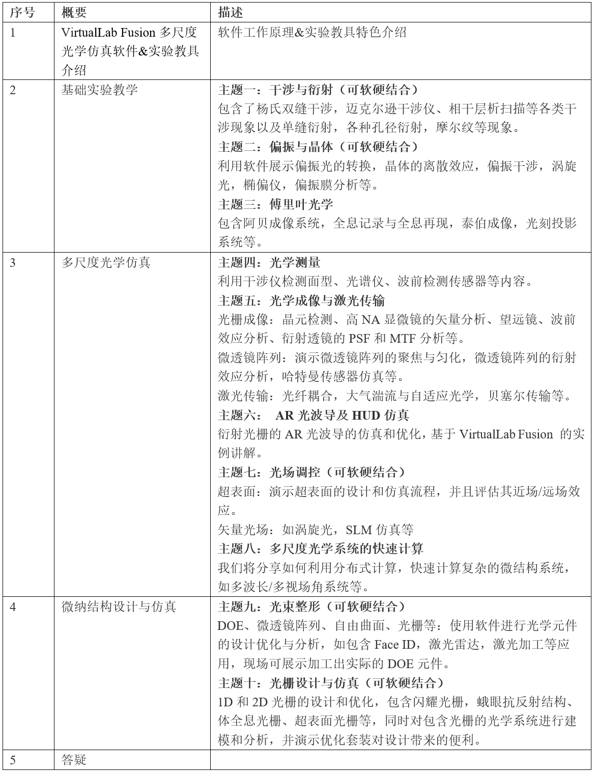 共享光學,智啟未來。多尺度光學仿真軟件VirtualLab Fusion作為虛擬實踐平臺,重現了經典物理光學中的重要原理和現象,比如狹縫衍射以及泊松亮斑實驗、邁克爾遜干涉以及楊氏雙縫干涉實驗等。2025年我們將繼續在全國開展VirtualLab Fusion多尺度光學仿真與實驗搭建全國巡講活動,本次活動對象擴展到更多高校、研究所與公司,我們將安排不同的主題活動,結合訊技光電自主研發合作的光學實驗教具,通過軟件、硬件虛實結合展示的直觀生動方式,以滿足高校、研究所與公司的不同光學技術交流需求。“星光百點,共享光學”正在火熱征集中,我們正在尋找志同道合的光學人—VirtualLab Fusion多尺度光學仿真與實驗搭建全國巡講活動開始啦!