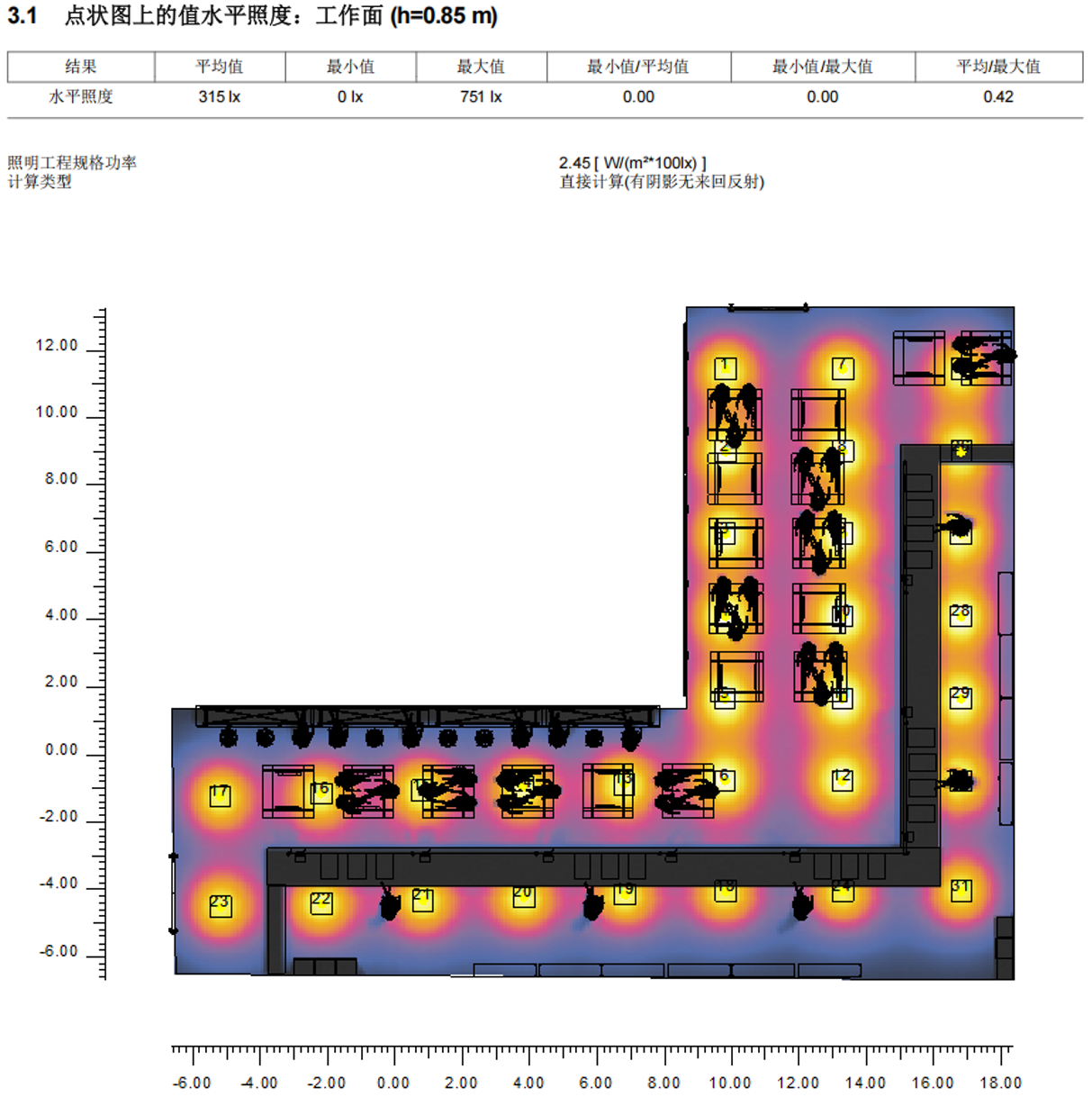 設(shè)計(jì)場(chǎng)所面積合理,其中布置燈具擺放合理,符合照明標(biāo)準(zhǔn)。