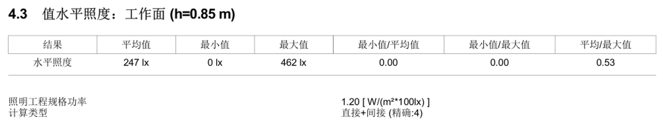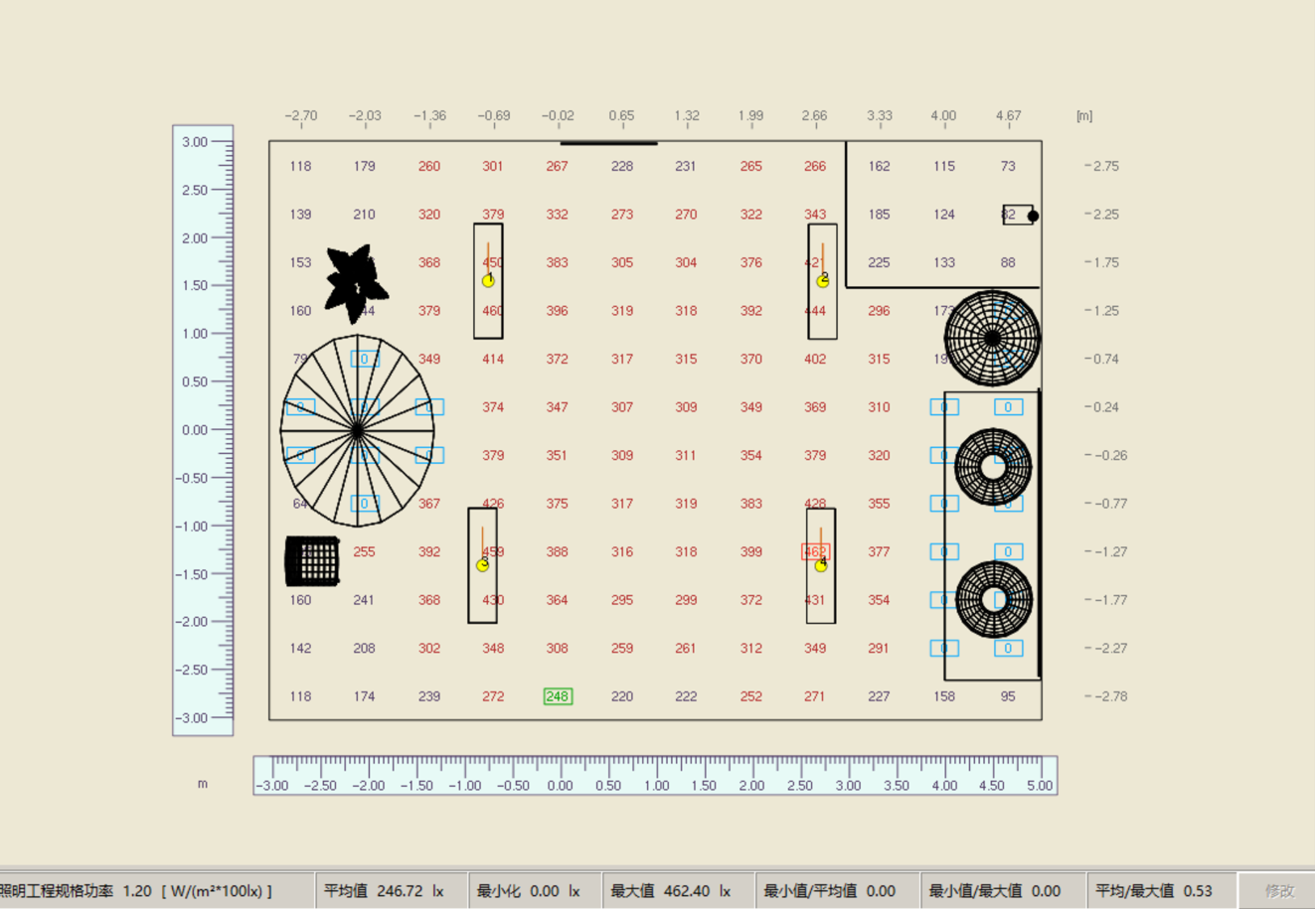 數(shù)值圖顯示區(qū)域照度為250-450lx。