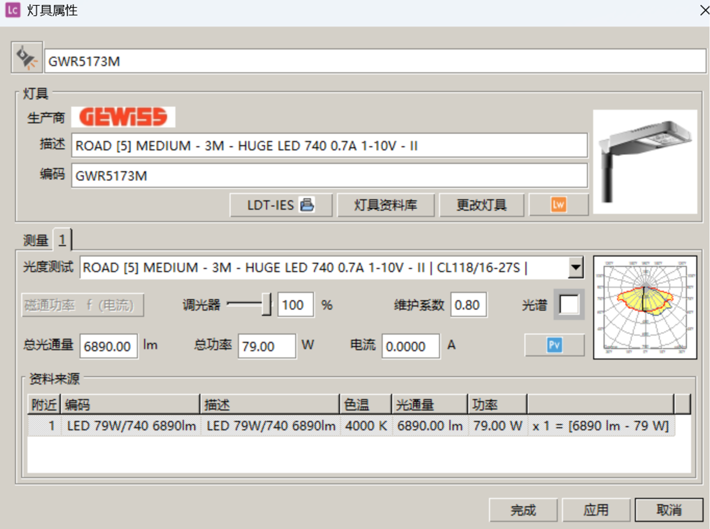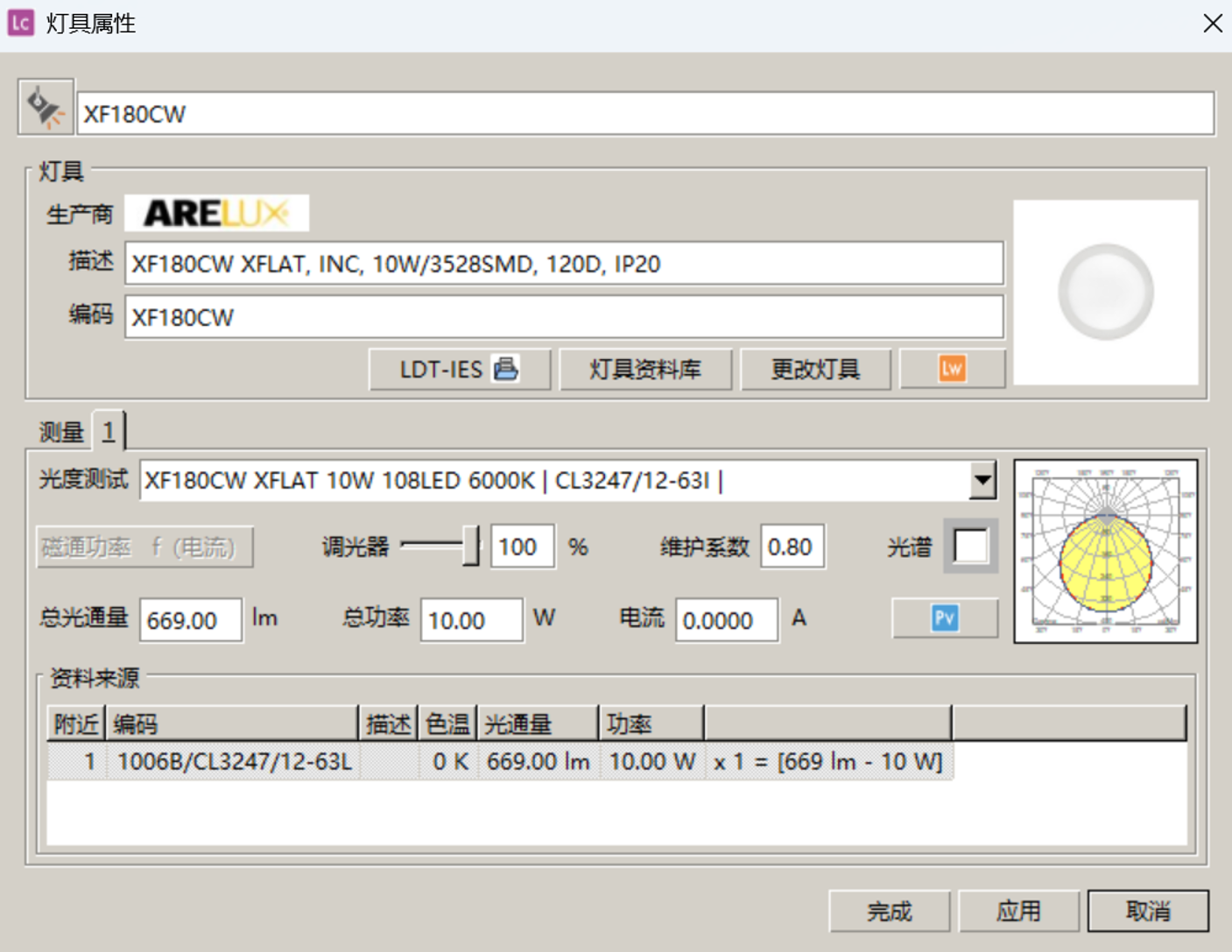 以上為本次案例所用燈具信息