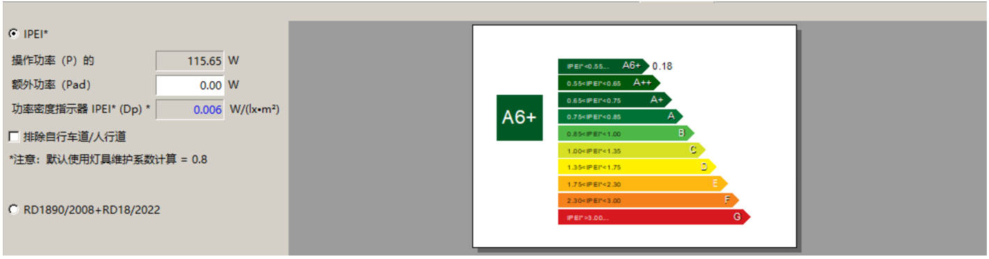 數值圖顯示道路區域照度為3.82cd/m2。