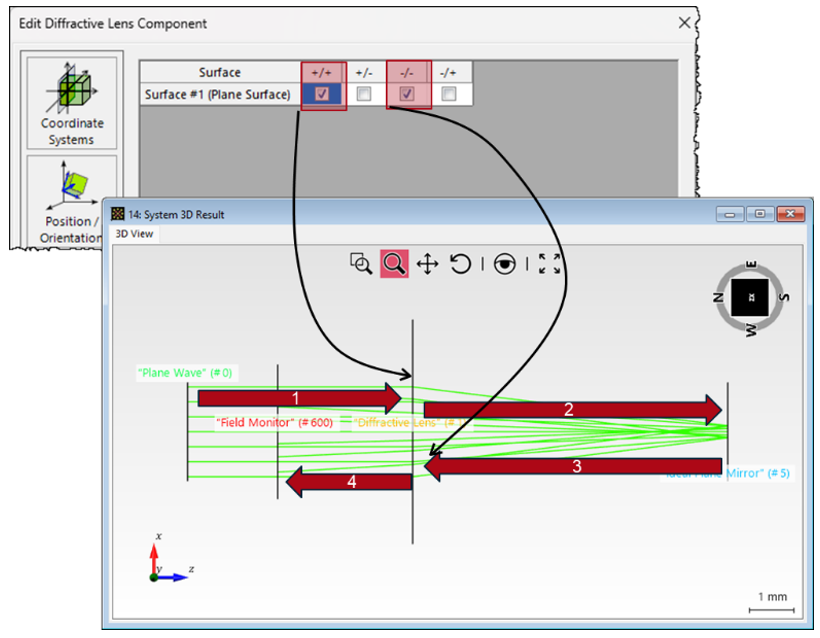 • 衍射透鏡元件現(xiàn)在支持全部四種表面通道(++, +-, -+, --)。