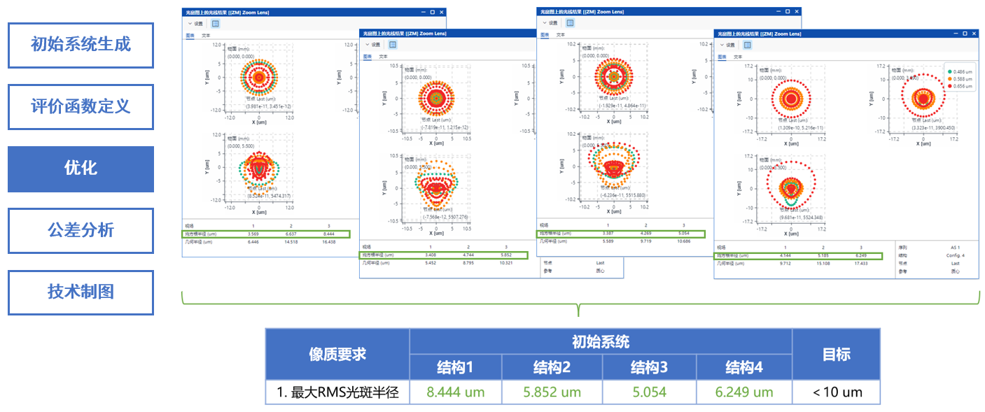 設(shè)計(jì)結(jié)果如下,像質(zhì),系統(tǒng)規(guī)格、額外系統(tǒng)限制以及加工要求均滿足預(yù)期設(shè)計(jì)目標(biāo)。