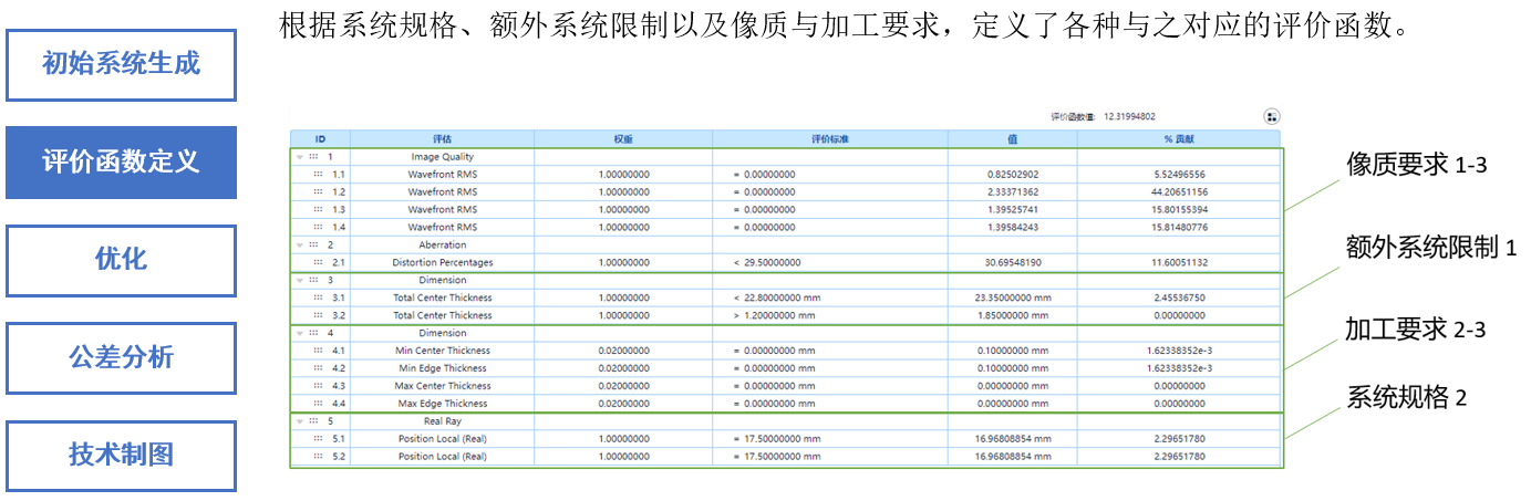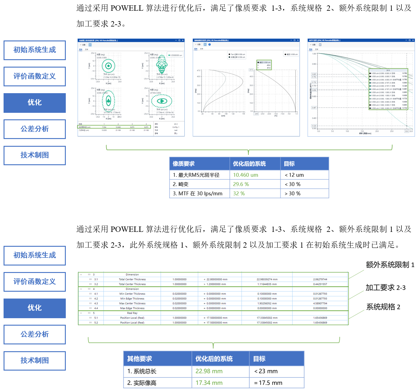 設計結果如下,像質,系統規格、額外系統限制以及加工要求均滿足預期設計目標。