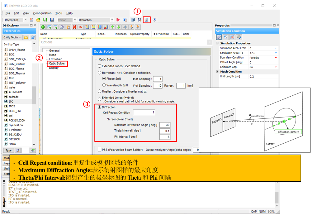 2.1結構生成,其中將光學求解器設置為“Diffraction”